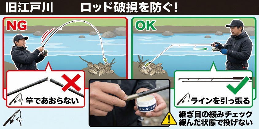 ロッド破損を防ぐ!旧江戸川での取り扱い注意点