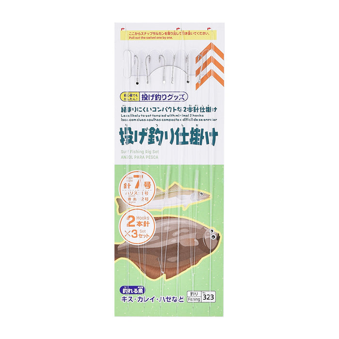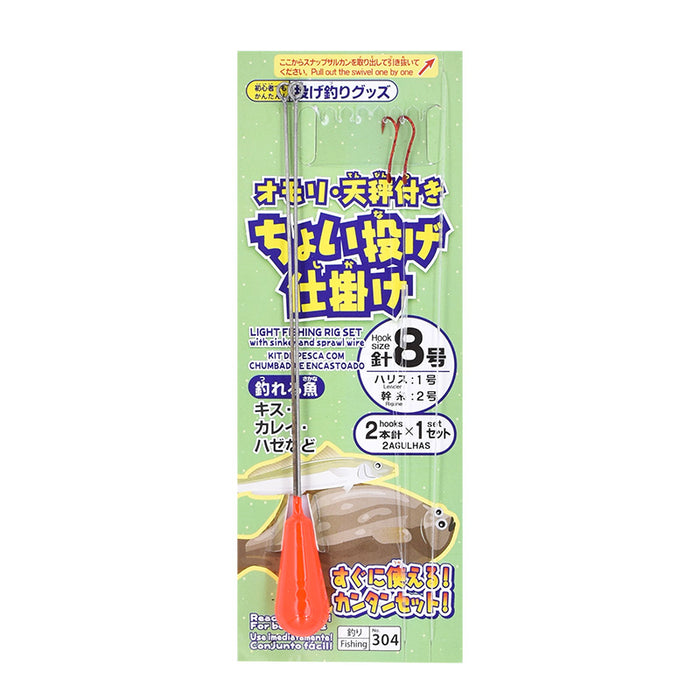 ダイソーでは下記のようなちょい投げ仕掛けも仕掛けとおもりのセットなどが販売していています。