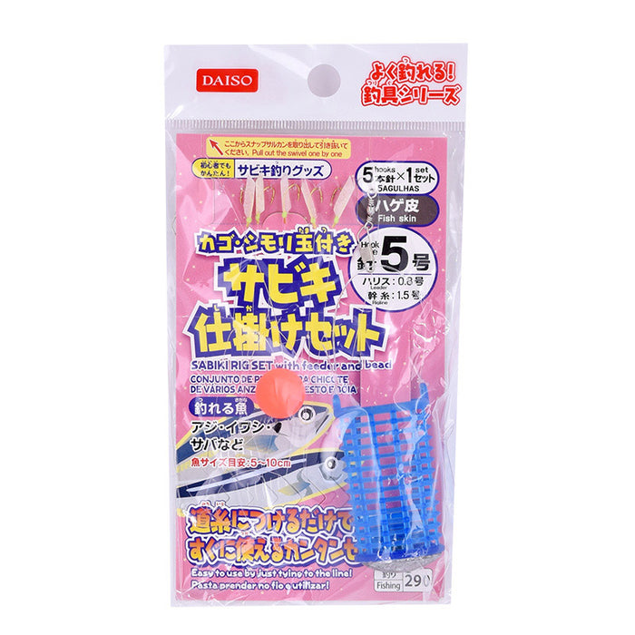 サビキ釣りは、撒きエサで魚をおびき寄せる釣り方で、アジやイワシ、サバなどが釣れやすいです。ダイソー商品の中にもサビキ釣りに使えるサビキの仕掛けやおもりも売っています。